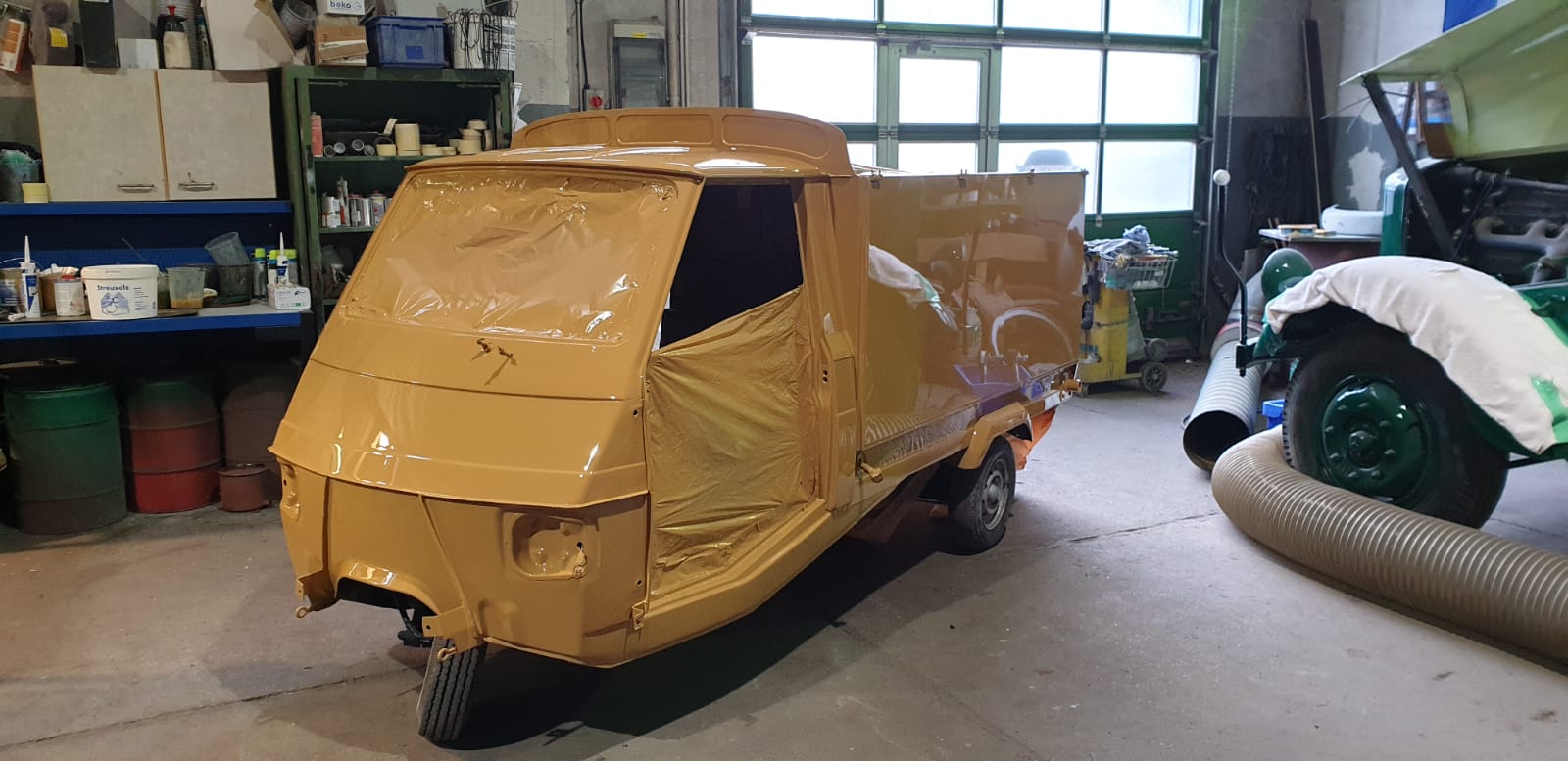 Das die italienischen Rollerdreiräder Kultstatus genießen muß man wohl niemandem mehr erklären. Die Ape (ital. Biene, auch als Vespacar bezeichnet) ist ein Kleintransporter und ein dreirädriges Rollermobil des italienischen Herstellers Piaggio. Die Ape wird seit 1947 in Italien hergestellt. Grundlage unseres Projektes ist eine APE Car P2 ( Baujahr 1982 / Zweitaktmotor mit 216 ccm / 8 kW) die erstmals im Jahr 1990 zugelassen wurde